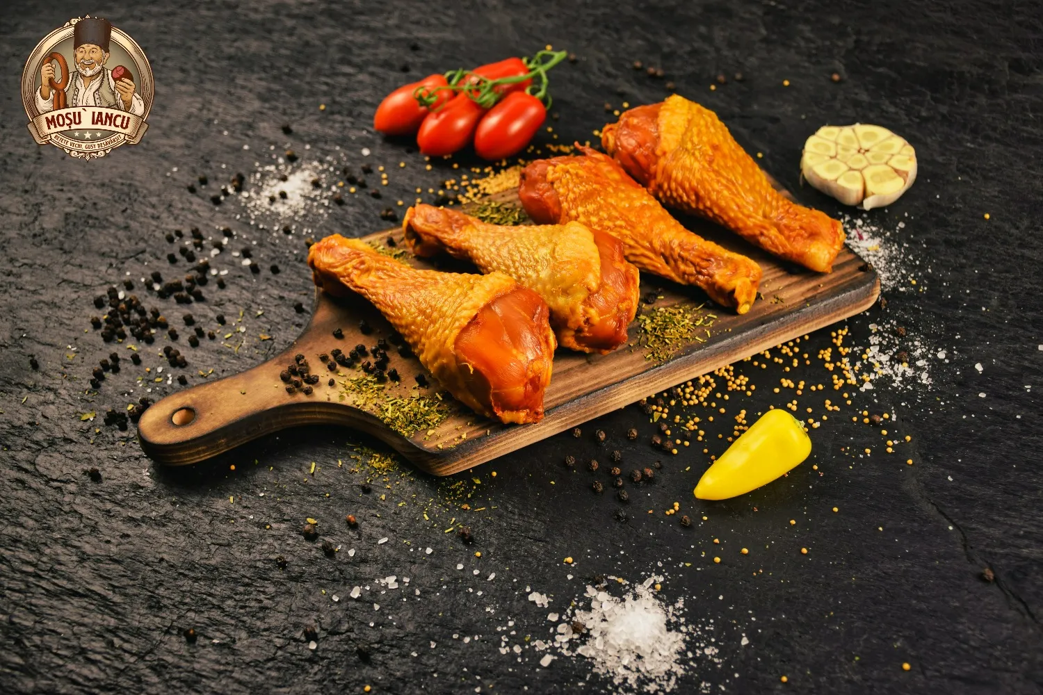 Brandul Mosu` Iancu isi respecta promisiunea: Retete vechi. Gust desavarsit. Aceasta filozofie se regaseste in fiecare produs, de la bacon si carnati pana la ciocanelele afumate. Fiecare bucata este o dovada a faptului ca gustul autentic romanesc poate fi pastrat si readus in prezent.