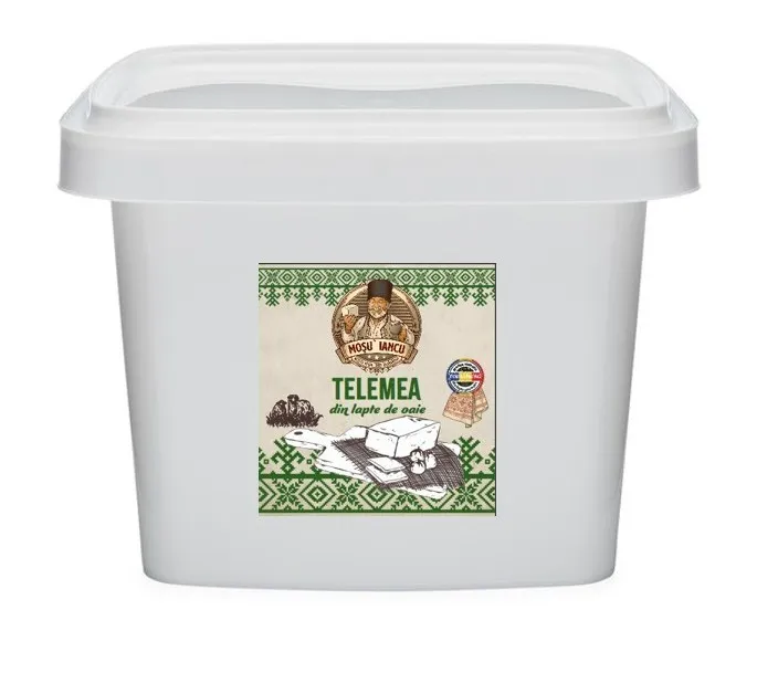 Telemea de Vaca Mosu’ Iancu 8kg pastreaza gustul autentic al branzei romanesti de altadata, fiind realizata din lapte proaspat de vaca, fara compromisuri in privinta calitatii. Este o branza curata, naturala, cu textura fina si gust bland, usor sarat, perfect echilibrat. Produsa cu grija si respect fata de traditie, aceasta telemea este ideala pentru cei care doresc sa aduca pe masa un aliment sanatos si plin de savoare. Formatul de 8kg este potrivit pentru restaurante, magazine traditionale sau familii care aleg produsele naturale, fara adaosuri inutile, asa cum le facea odinioara Mosu’ Iancu.