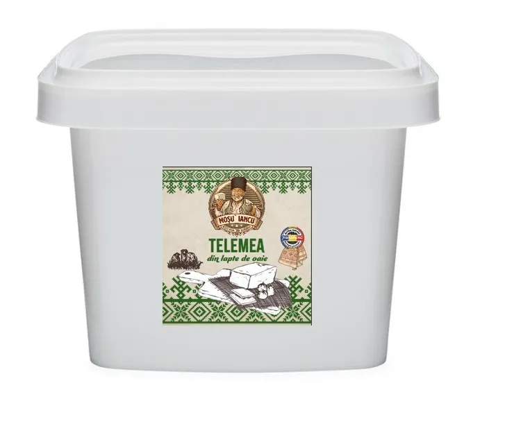 Telemea Mosu’ Iancu Vaca Vid 300g este o branza traditionala romaneasca, preparata din lapte de vaca si ambalata in vid pentru a-i pastra prospetimea si gustul autentic. Cu o textura frageda si usor sfaramicioasa, aceasta telemea are un gust echilibrat, sarat atat cat trebuie pentru a fi savurata simplu sau alaturi de alte preparate. Poate fi servita in salate, aperitive, sandvisuri sau alaturi de legume proaspete. Ambalajul de 300g este ideal pentru consum casnic si pastreaza gustul autentic al branzei romanesti de altadata.